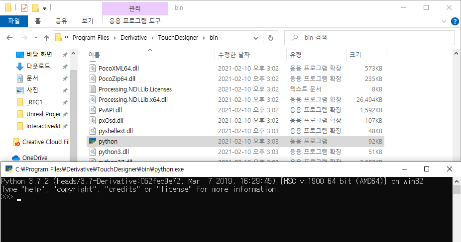 터치디자이너에서 파이썬 버젼 확인하기